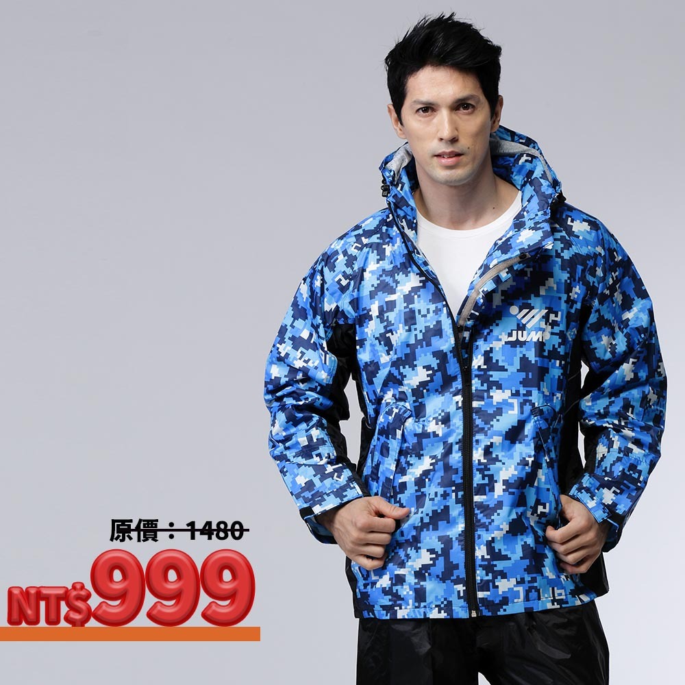 JUMP 樂扣 透氣防水風衣-迷彩藍