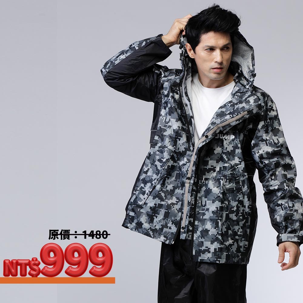 JUMP 樂扣 透氣防水風衣-迷彩灰