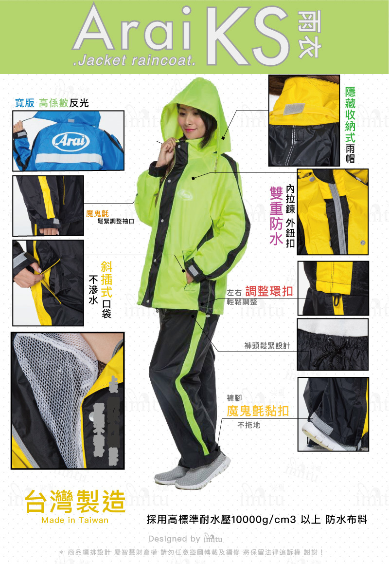 Arai KS系列 套裝二件式風雨衣 賽車款 K6 台灣製造- 皇家藍