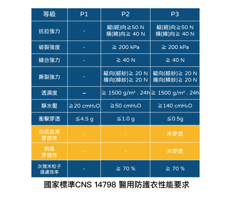 P3等級防護衣會在縫合處加防水膠條,主要是阻隔血液或體液在縫合處滲漏,以達到有效阻隔血液穿透及病毒入侵。