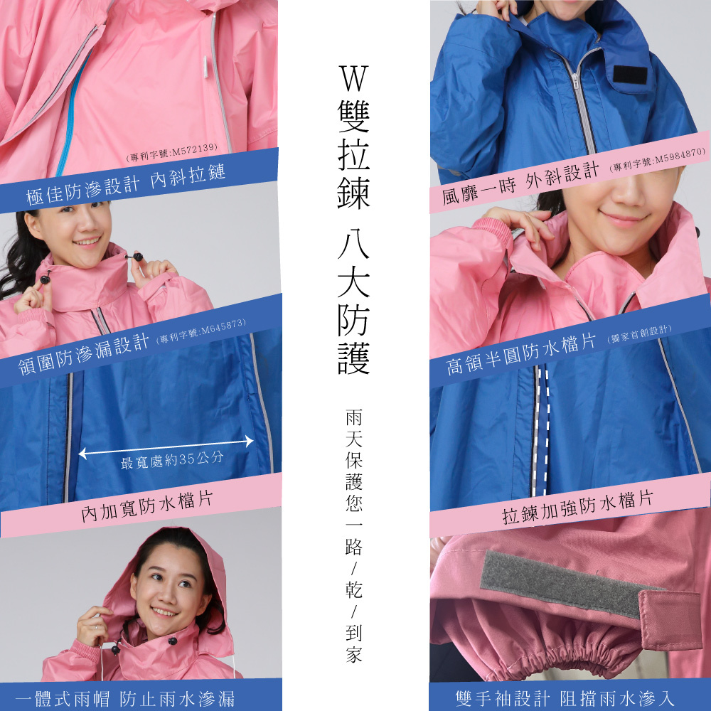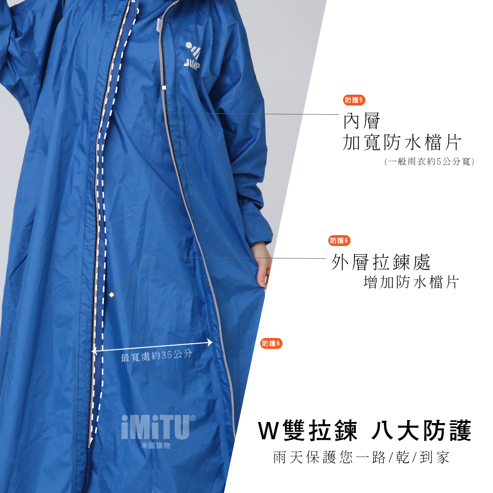 5️⃣防護5. 內加寬防水檔片 一般雨衣約5公分 W雙拉鍊最寬處約35公分
