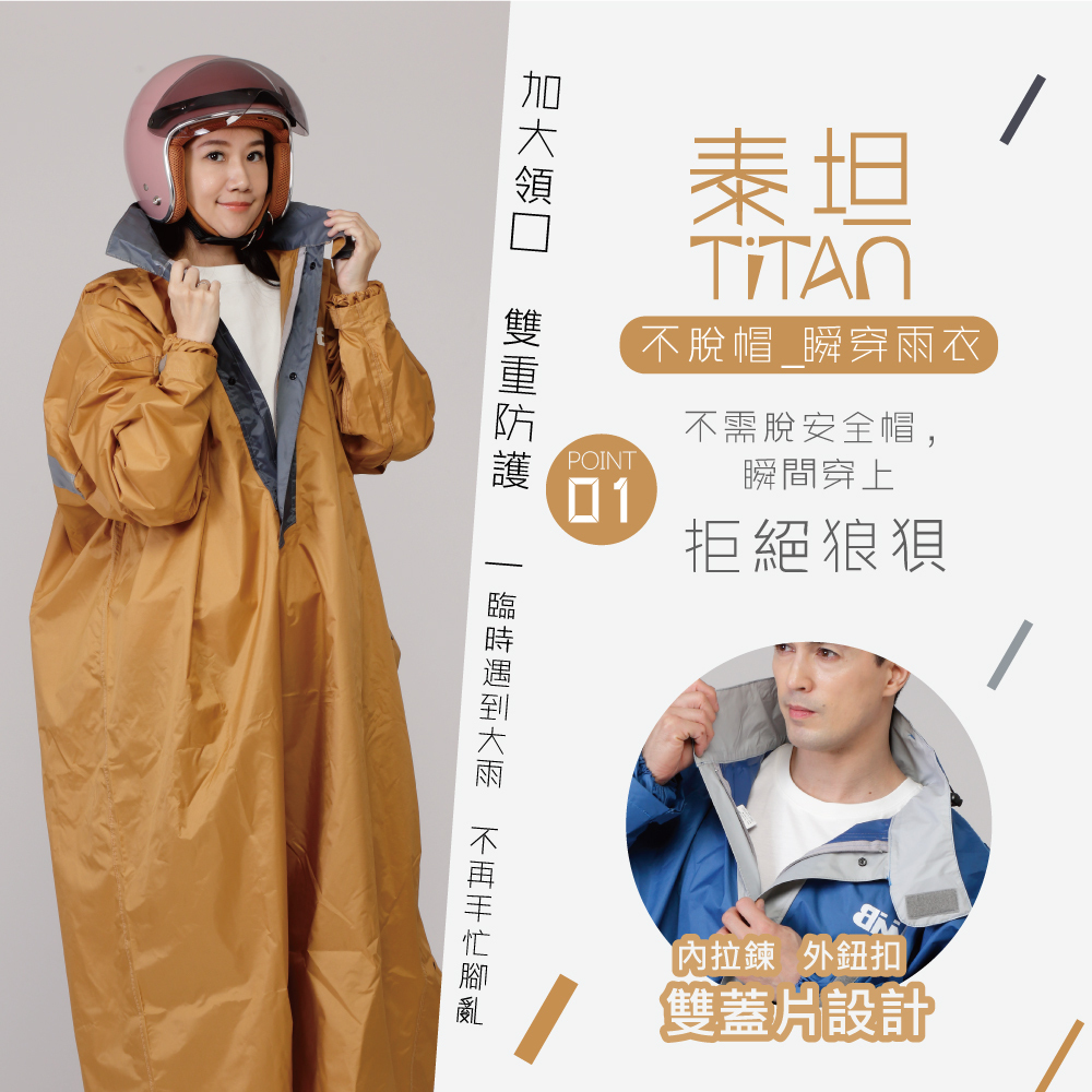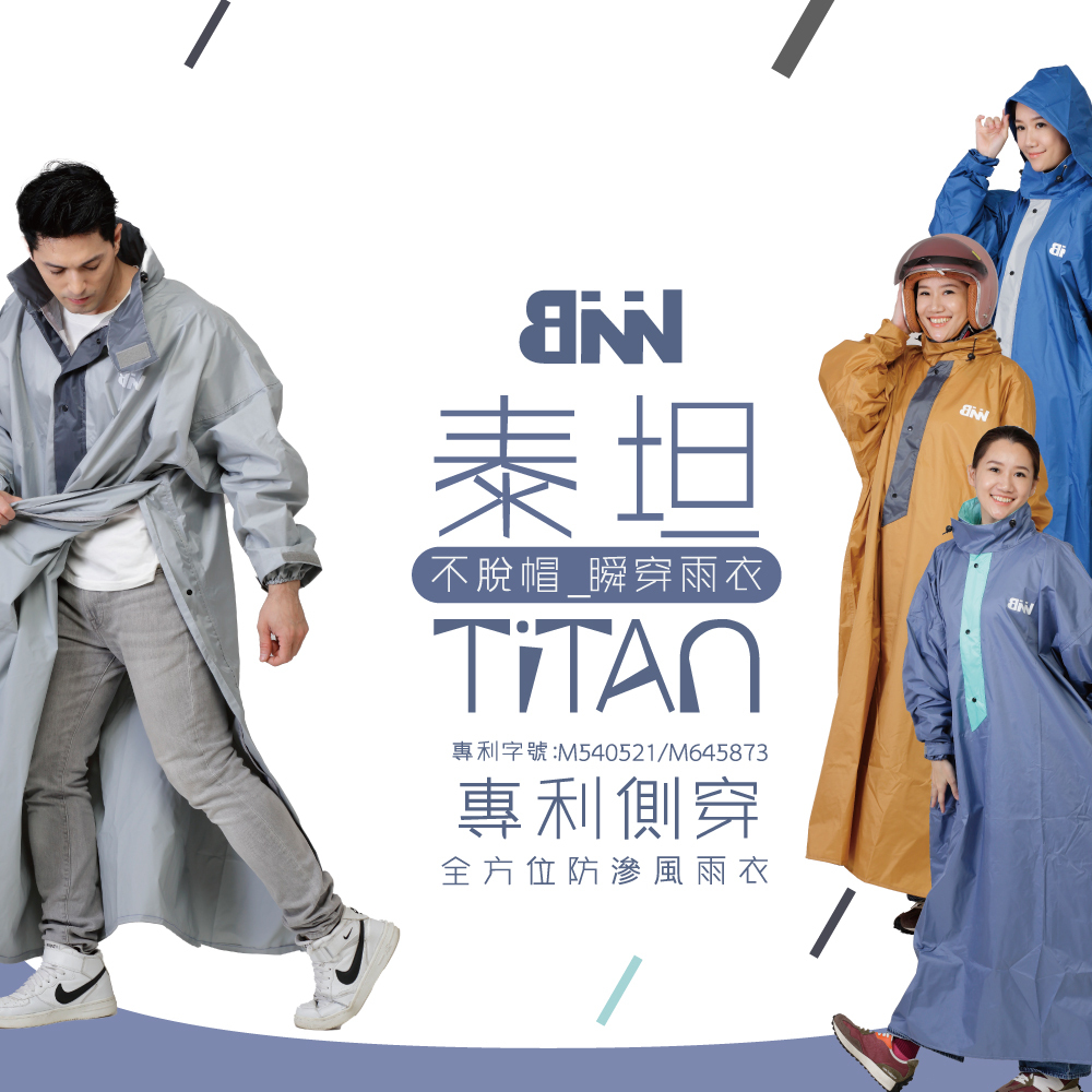 經歷一年的精心研發與設計,BNN 斌瀛 推出全新品牌——泰坦 TiTAN 不脫帽專利防滲瞬穿雨衣!