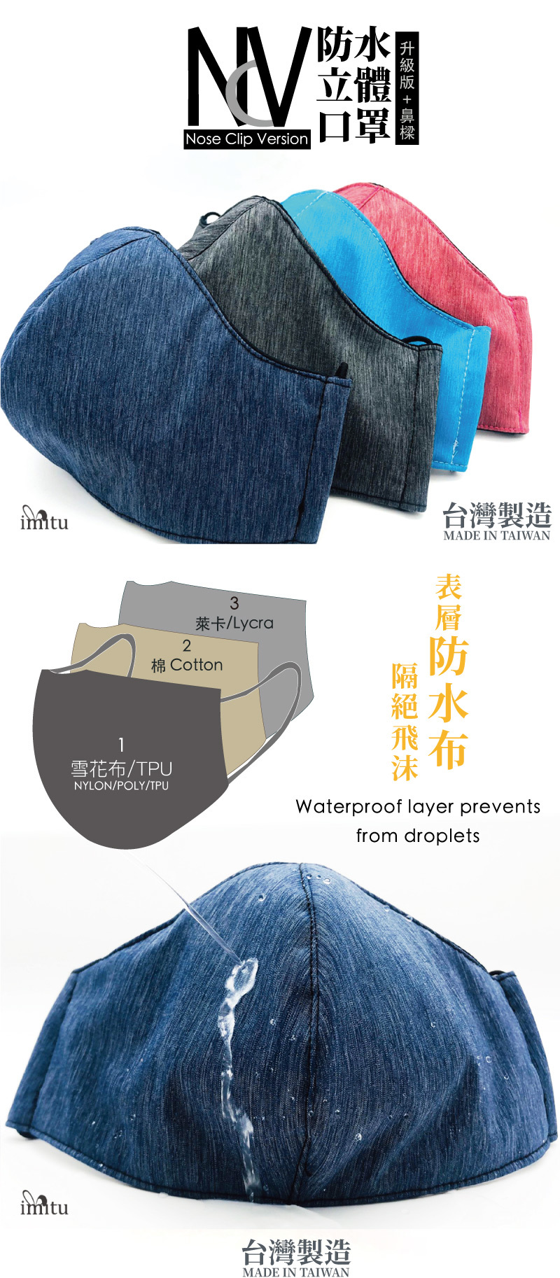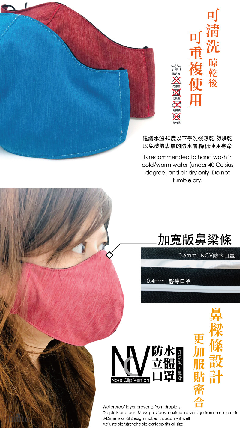 NCV 防水3D立體口罩升級版+鼻樑條 台灣製造3DMASK+