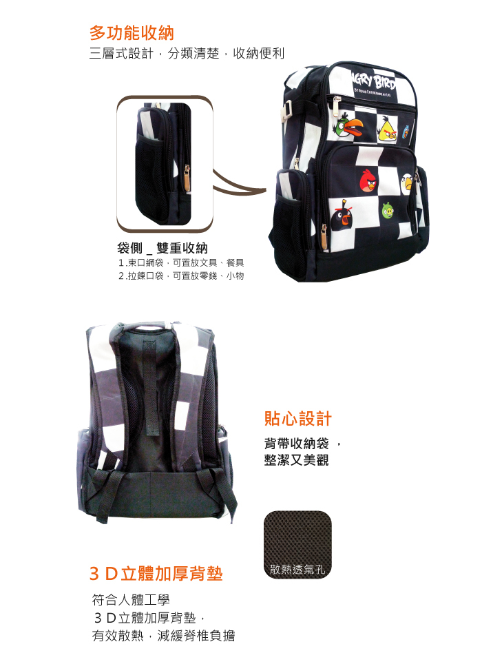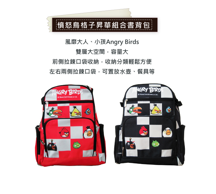 憤怒鳥昇華格紋護脊書包_紅