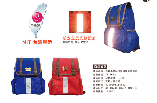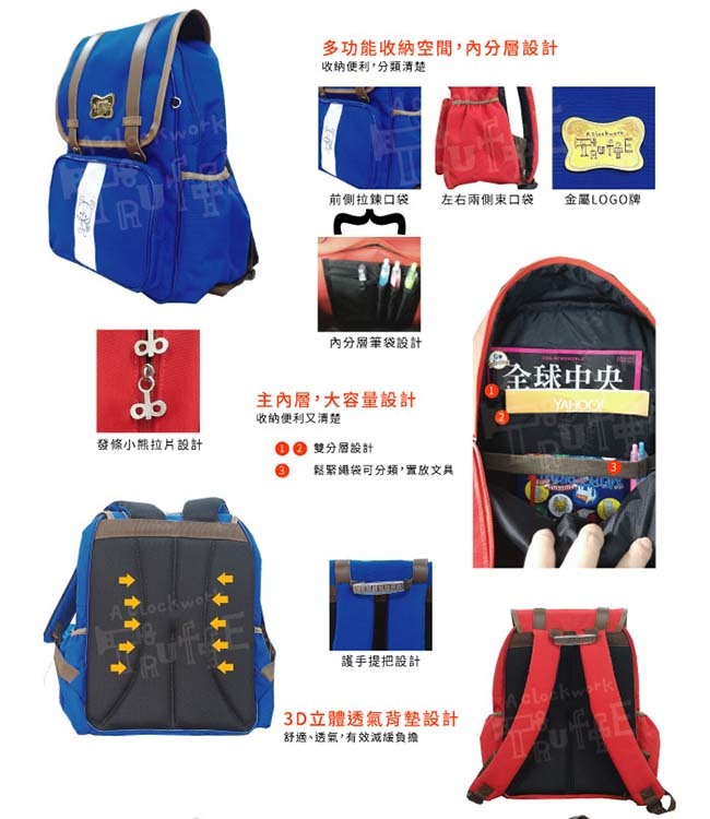 發條小熊MIT高級護脊後背書包_紅TF5692B